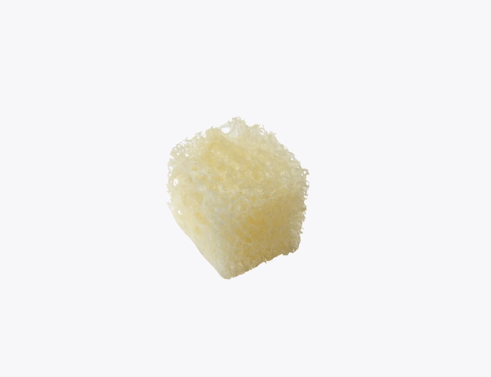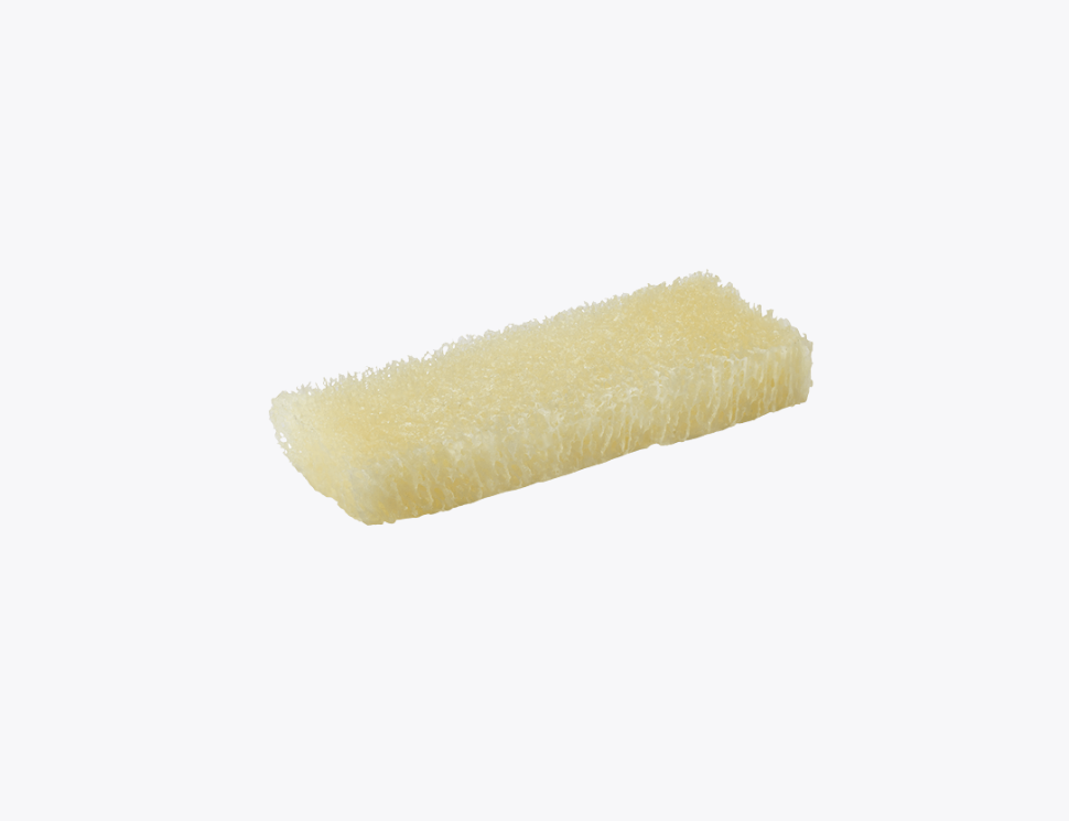 Compressible sponge readily conforms to fill a defect, maximizing direct bone to graft contact.